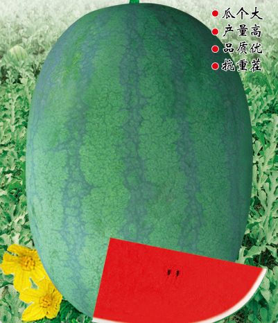 ■ 特征特性 :早中熟種,坐果至成熟28天左右,全生育期90天左右。植株長勢穩(wěn)健,抗病抗逆性強(qiáng),生態(tài)適應(yīng)性廣,易坐果。果實橢圓形,果皮墨綠色底上覆暗條帶,果面光滑無棱帶蠟粉。瓤色深紅,瓤質(zhì)酥脆,中心糖14%左右,口感好,風(fēng)味佳。平均單果重8-10kg左右,大者20kg以上(特殊栽培),一般畝產(chǎn)6000公斤以上。皮厚1.0cm左右,果皮硬度強(qiáng),耐儲運(yùn)。高抗枯萎病抗重茬,兼抗炭疽病和病毒病,在2年重茬地種植,其產(chǎn)量品質(zhì)無明顯差異。綜合性狀優(yōu)于目前抗病品種。