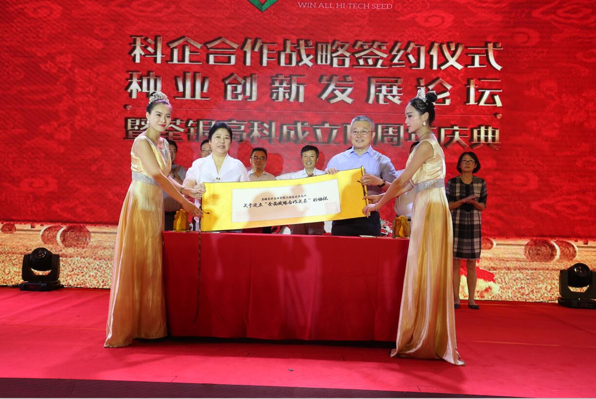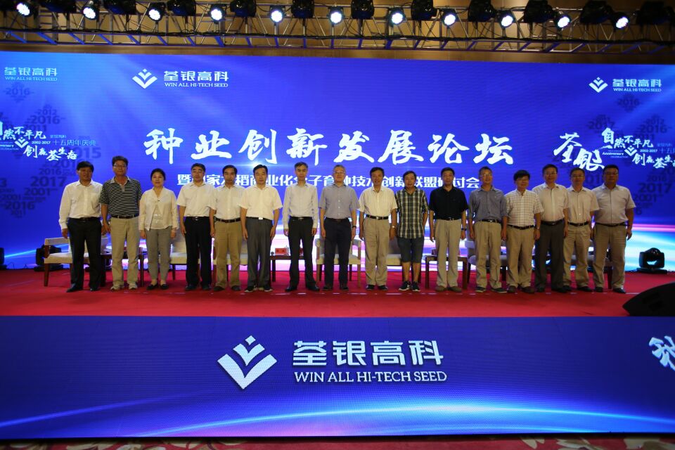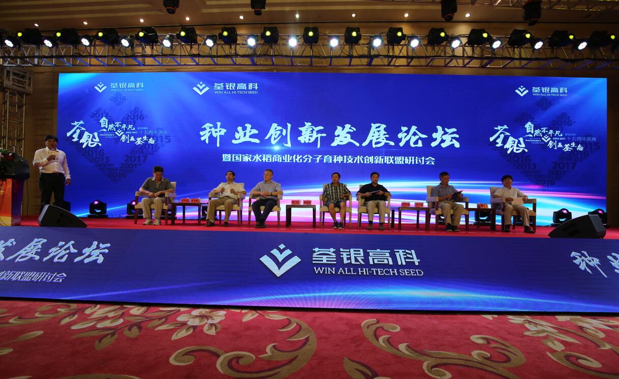 十五載風(fēng)雨兼程,十五載春華秋實(shí)!2017年8月29日,科企合作戰(zhàn)略簽約儀式·種業(yè)創(chuàng)新發(fā)展論壇暨荃銀高科成立15周年慶典大會(huì)在合肥隆重舉行。農(nóng)業(yè)部種子局局長(zhǎng)張延秋,農(nóng)業(yè)部科教司司長(zhǎng)廖西元,中國(guó)科學(xué)院院士、國(guó)家基因研究中心主任、上海植生生態(tài)所所長(zhǎng)韓斌,中國(guó)種子協(xié)會(huì)副會(huì)長(zhǎng)兼秘書長(zhǎng)蔣協(xié)新,安徽省科技廳廳長(zhǎng)宛曉春,安徽省農(nóng)業(yè)委員會(huì)副主任周世其、朱永東,“中國(guó)種業(yè)十大功勛人物”、荃銀高科創(chuàng)始人、安徽張海銀基金會(huì)理事長(zhǎng)張海銀先生,以及來(lái)自農(nóng)業(yè)部、中國(guó)種子協(xié)會(huì)和省、市有關(guān)部門的領(lǐng)導(dǎo)、專家、嘉賓,國(guó)家水稻商業(yè)化分子育種技術(shù)創(chuàng)新聯(lián)盟的科學(xué)家,戰(zhàn)略合作簽協(xié)單位代表,種業(yè)界同仁,還有來(lái)自印度尼西亞、孟加拉、巴基斯坦、越南等國(guó)家的20多位外賓朋友,計(jì)500多人參加了此次活動(dòng)。
