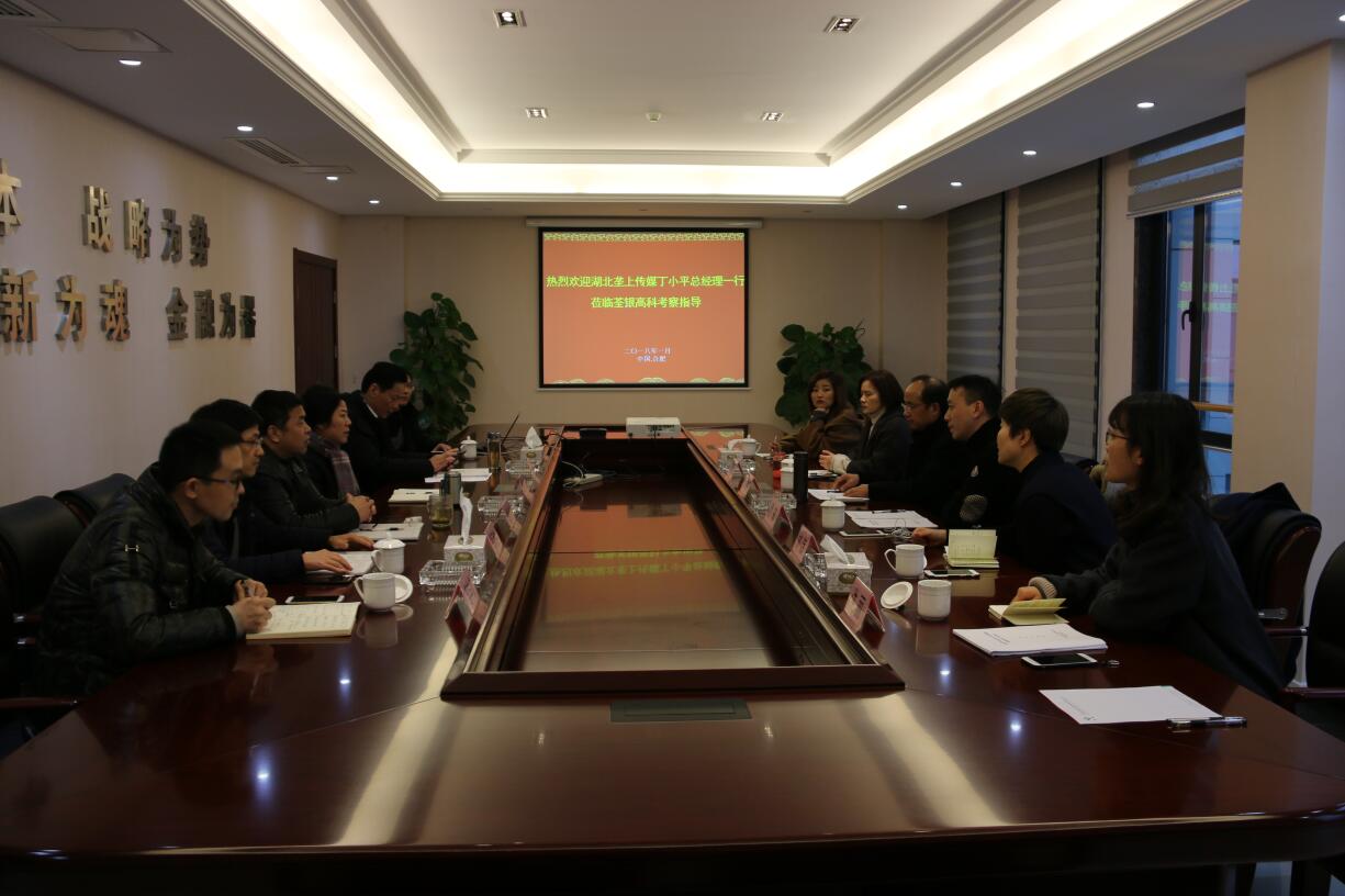2018年1月19日,湖北壟上傳媒集團丁小平總經(jīng)理一行蒞臨荃銀高科參觀考察,公司董事長、總經(jīng)理張琴女士熱情接待了丁小平先生一行,并參加座談交流。