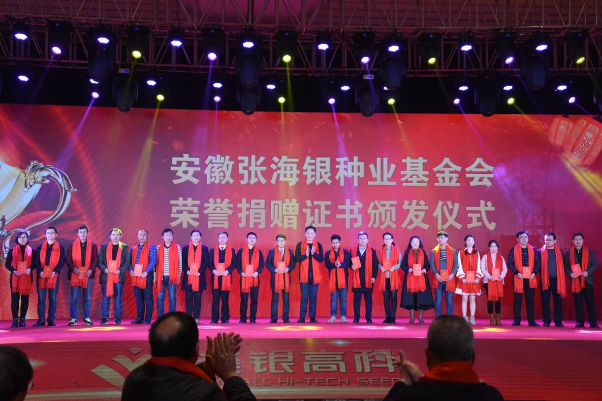 會上,對荃銀高科總部及子公司2017年度先進集體、先進個人進行了表彰獎勵;進行了安徽張海銀種業(yè)基金會頒發(fā)捐贈證書儀式。