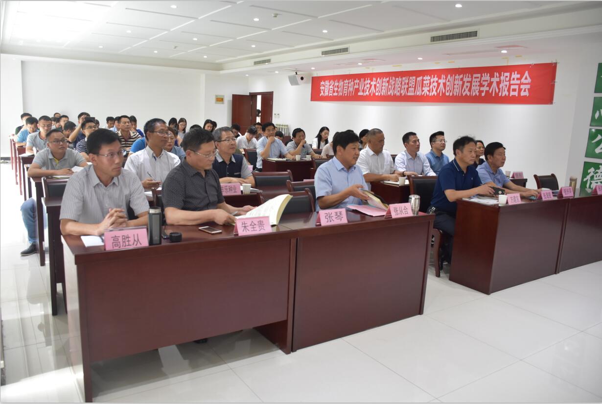 ??? 24日下午,安徽省生物育種產(chǎn)業(yè)技術(shù)創(chuàng)新戰(zhàn)略聯(lián)盟瓜菜技術(shù)創(chuàng)新發(fā)展學(xué)術(shù)報(bào)告會(huì)召開,合肥市科技局農(nóng)村與社會(huì)發(fā)展科技處處長(zhǎng)方建東,安徽省蔬菜產(chǎn)業(yè)技術(shù)體系首席專家、國家西甜瓜產(chǎn)業(yè)技術(shù)體系合肥綜合試驗(yàn)站站長(zhǎng)張其安研究員,豐樂種業(yè)、徽大農(nóng)業(yè)等安徽省生物育種產(chǎn)業(yè)技術(shù)創(chuàng)新戰(zhàn)略聯(lián)盟成員及員工70余人參加了報(bào)告會(huì)。