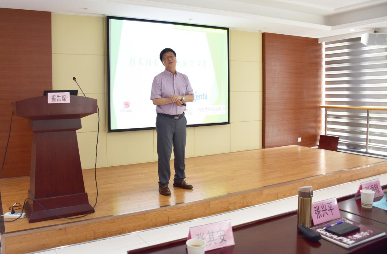 ??? 張興平博士在會(huì)上作《國際西甜瓜研究現(xiàn)狀與未來發(fā)展方向的報(bào)告》,對(duì)西瓜育種前生今世進(jìn)行介紹,就西甜瓜新品種的選育理念、方法、路徑做了生動(dòng)的講解。
