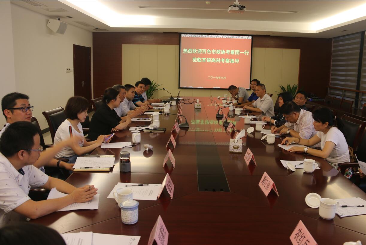 ??? 在調(diào)研考察座談會(huì)上,荃銀高科總經(jīng)理張琴女士對(duì)百色市政協(xié)考察團(tuán)一行到來表示熱烈歡迎,副總經(jīng)理張從合先生就公司發(fā)展和科技創(chuàng)新情況等進(jìn)行了匯報(bào)??疾靾F(tuán)一行聽取匯報(bào)后,對(duì)荃銀高科取得的成績及創(chuàng)新做法給予肯定,并希望雙方兩地能夠進(jìn)一步加強(qiáng)合作,實(shí)現(xiàn)共同發(fā)展。