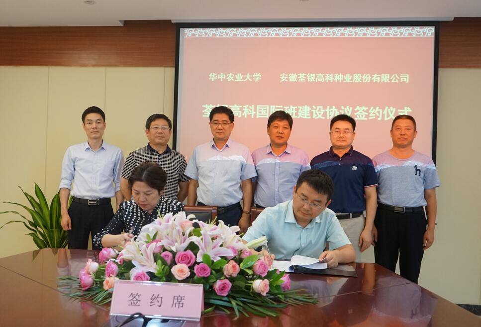 ??? 2019年8月12日,華中農(nóng)業(yè)大學(xué)校黨委常委、組織部長李向東,植物科學(xué)技術(shù)學(xué)院黨委書記周雄,植物科學(xué)技術(shù)學(xué)院院長嚴建兵一行蒞臨荃銀高科,雙方簽署荃銀高科國際合作班建設(shè)協(xié)議并座談交流,荃銀高科副董事長、總經(jīng)理張琴,副總經(jīng)理、首席技術(shù)官、荃銀農(nóng)科院院長張從合,副總經(jīng)理朱全貴等領(lǐng)導(dǎo)熱情接待了李向東常委一行。