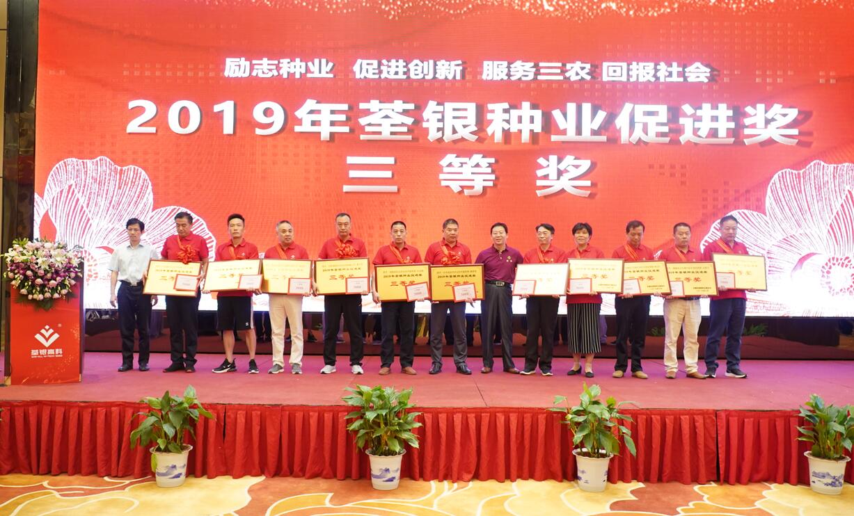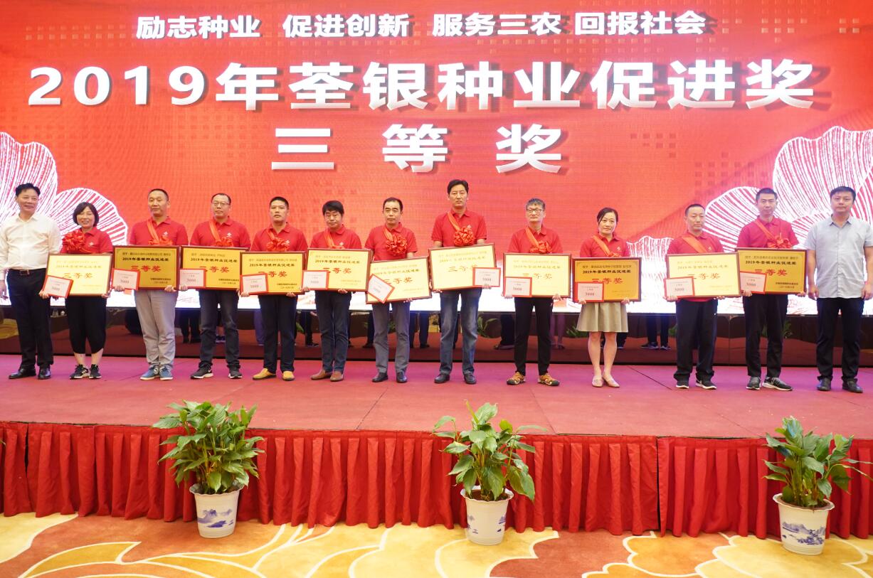 ??? 守初心擔使命,荃銀人深知企業(yè)的發(fā)展離不開社會的支持。會上,安徽張海銀種業(yè)基金會監(jiān)事鄭滿生先生宣讀“荃銀種業(yè)促進獎”頒獎文件,大會向35名在優(yōu)質水稻推廣和良種服務等方面取得優(yōu)異成績的代表頒發(fā)了“荃銀種業(yè)促進獎”專項獎。
