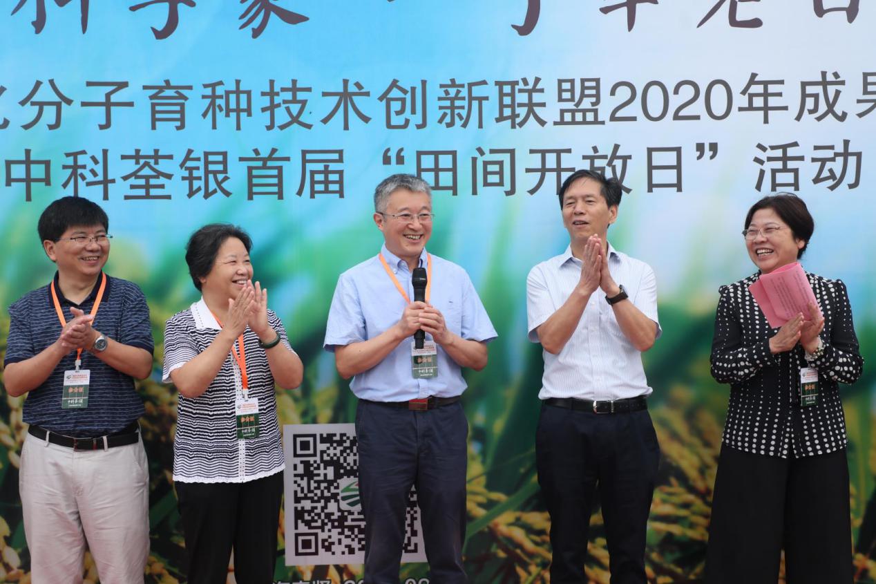 種業(yè)是現(xiàn)代農(nóng)業(yè)的“芯片”,是保障國家糧食安全端牢中國飯碗的源頭。在國家“十四五”規(guī)劃布局之年,全面打贏脫貧攻堅(jiān)戰(zhàn)收官之年,特別是在受新冠疫情影響人民群眾高度關(guān)注糧食安全之年,“6+1”國家水稻商業(yè)化分子育種技術(shù)創(chuàng)新聯(lián)盟2020 年成果展示會(huì)暨中科荃銀首屆“田間開放日”活動(dòng)于9月12日在上海召開。6+1國家聯(lián)盟首席科學(xué)家、中科院分子植物科學(xué)卓越創(chuàng)新中心主任韓斌院士,中國種子協(xié)會(huì)副會(huì)長馬淑萍,上海市農(nóng)業(yè)農(nóng)村委一級(jí)巡視員王國忠等來自全國各地的領(lǐng)導(dǎo)、專家和企業(yè)家近百人出席,6+1國家聯(lián)盟理事長、荃銀高科副董事長、總經(jīng)理張琴女士主持本次活動(dòng)。