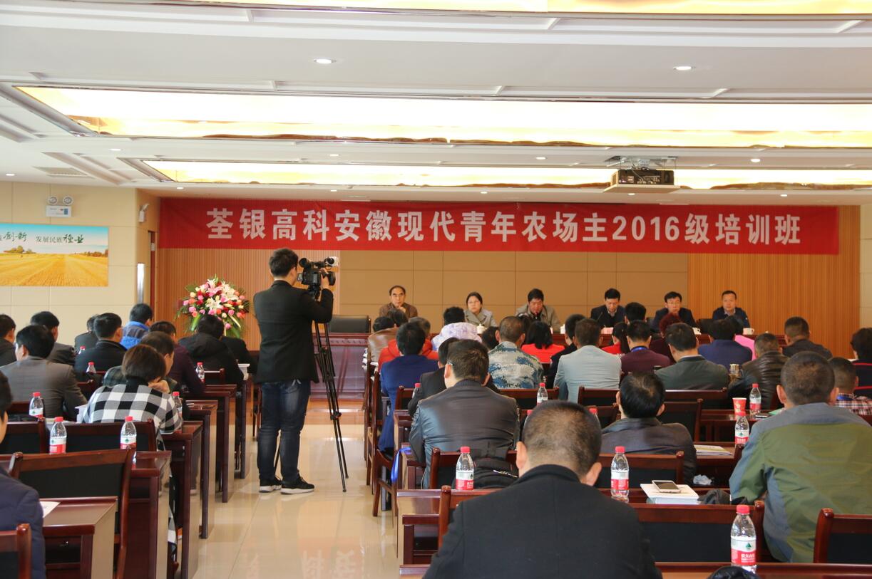 2017年3月27日上午,荃銀高科安徽現(xiàn)代青年農(nóng)場(chǎng)主2016級(jí)培訓(xùn)班開班儀式在肥舉行。合肥市農(nóng)委主任夏倫平、共青團(tuán)安徽省委農(nóng)村工作部副部長陳永剛、安徽農(nóng)業(yè)大學(xué)農(nóng)學(xué)院黨委副書記鄢高翔、荃銀高科董事長張琴等領(lǐng)導(dǎo)出席開班儀式。